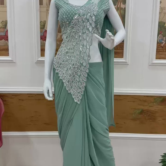 π Ready To Wear Saree Details Fabric:- FAUX GEORGETTE Work:- EMBROIDERY THREAD & SEQUINS WORK / READY TO WEAR / 5.5 mtr